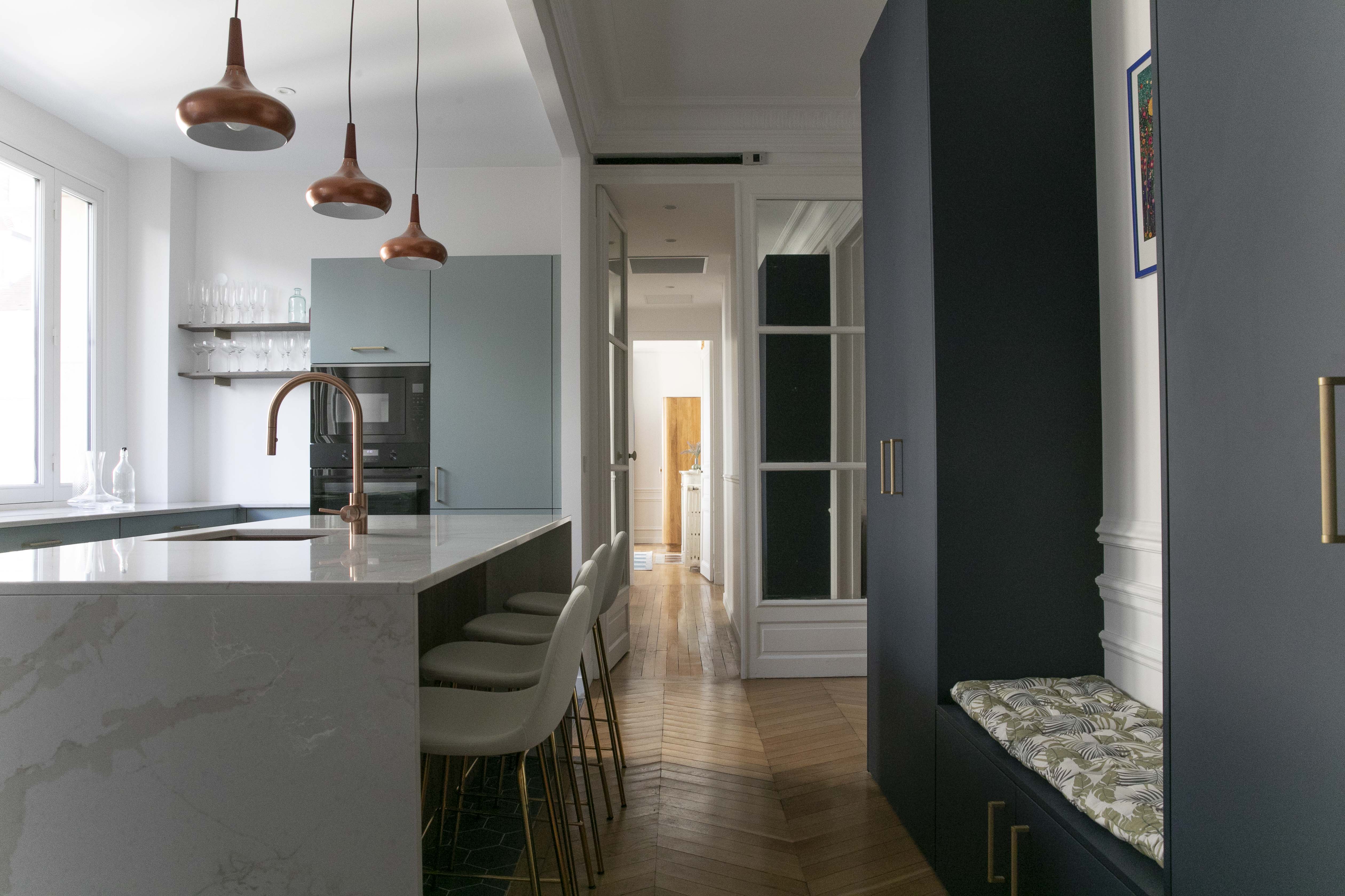 Magnifique appartement de 134 m2 avec 3 chambres, au calme, totalement refait à neuf avec climatisation, ascenseur, entièrement sur cour dans un environnement privilégié au cœur du Marais :