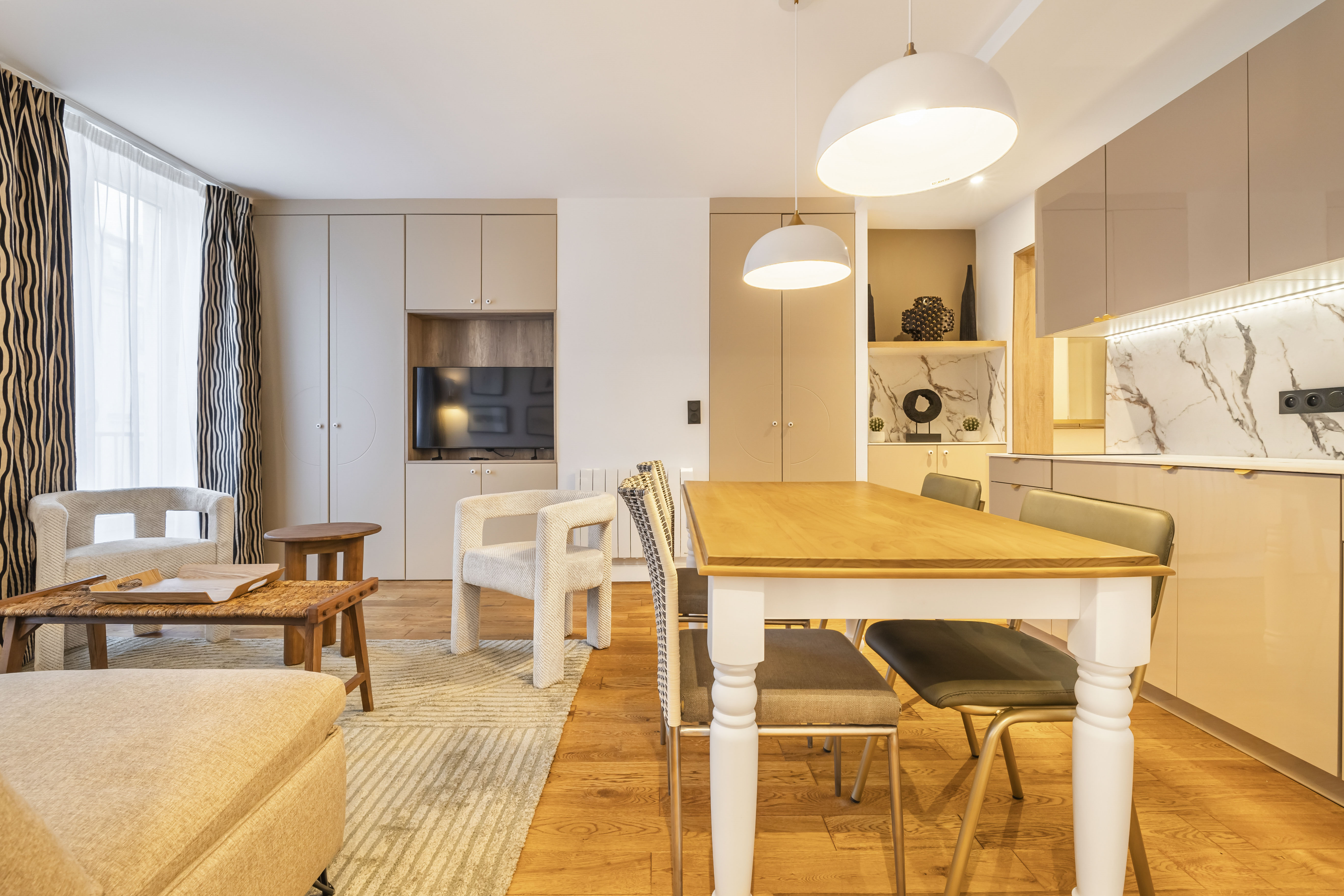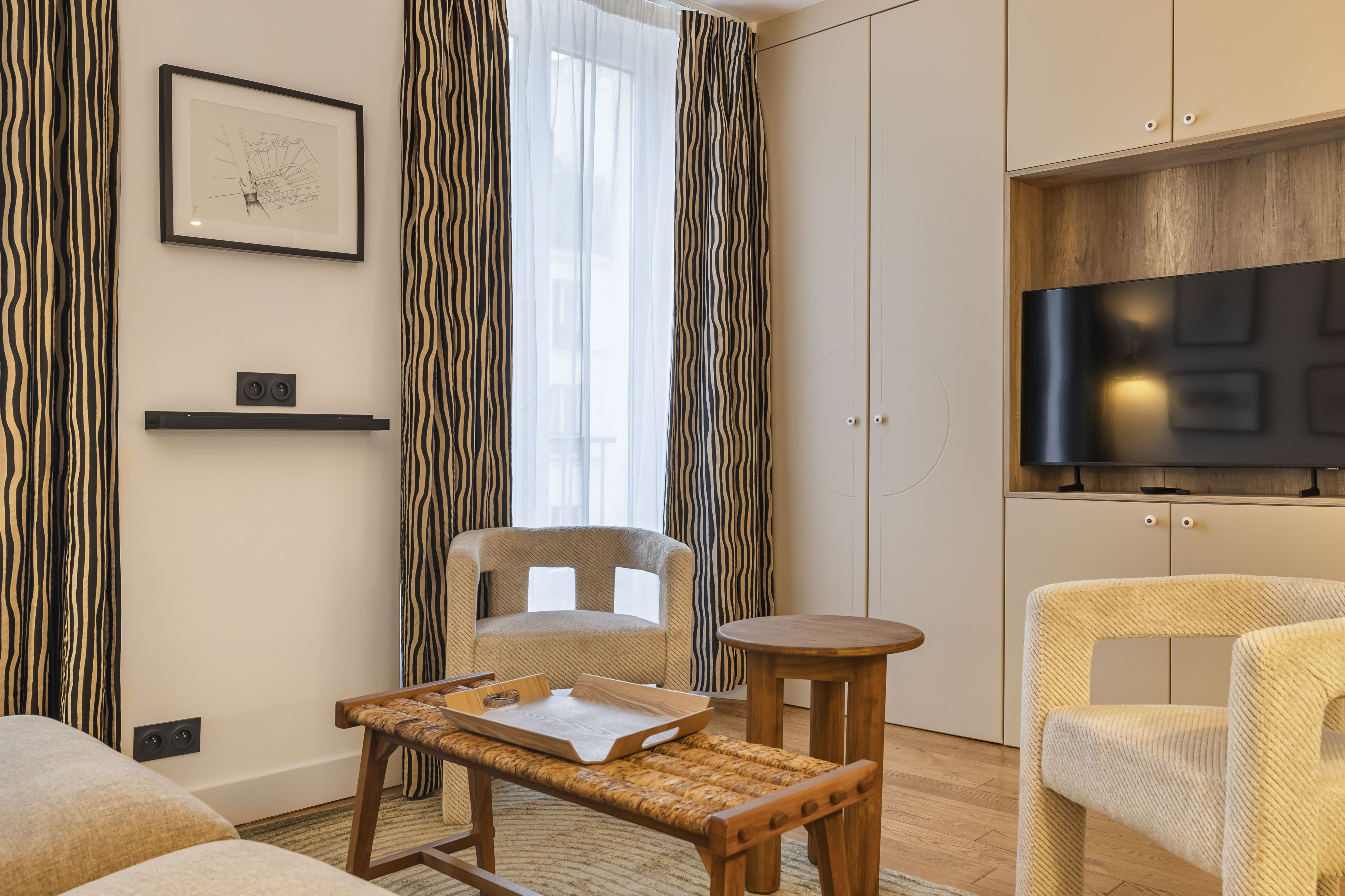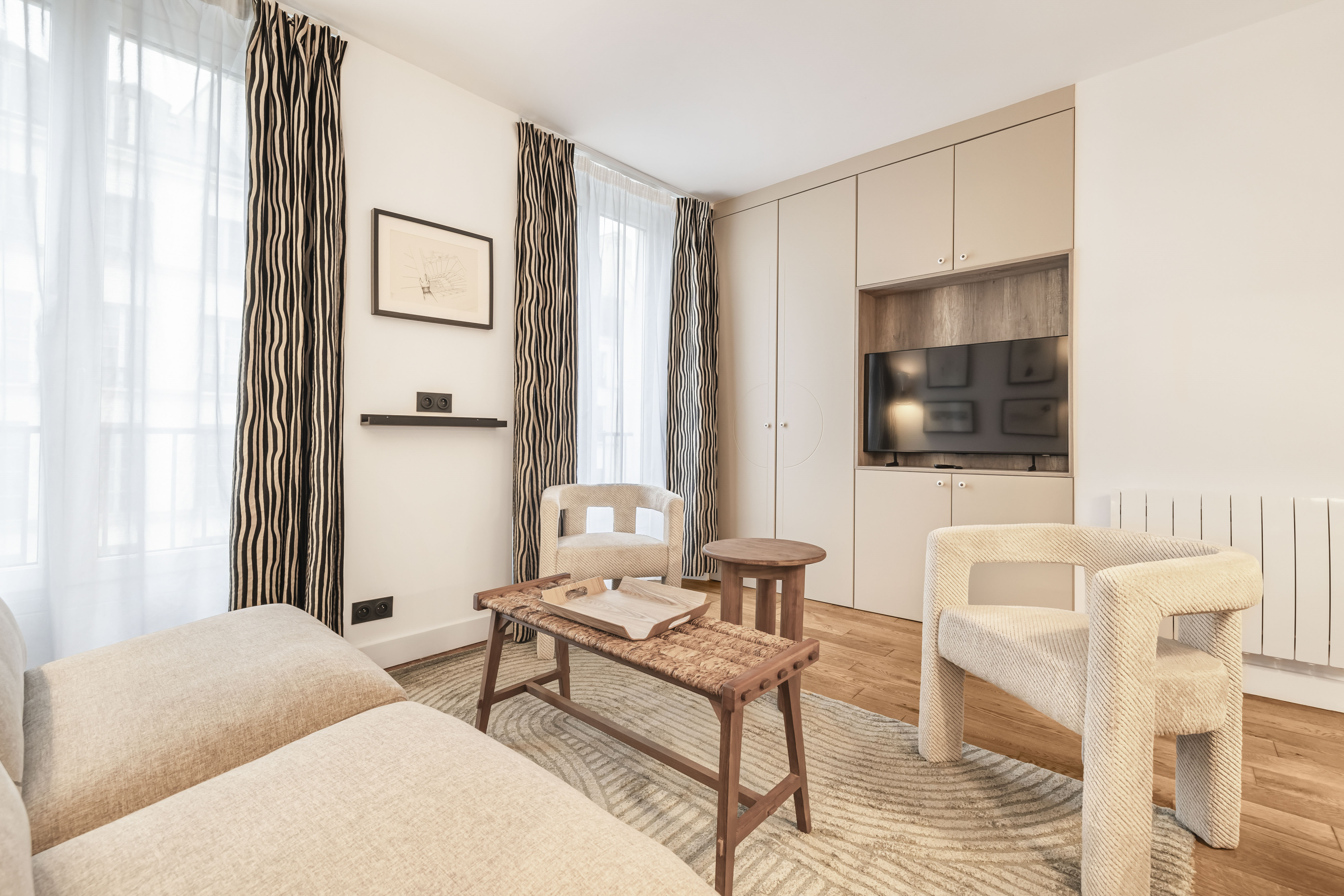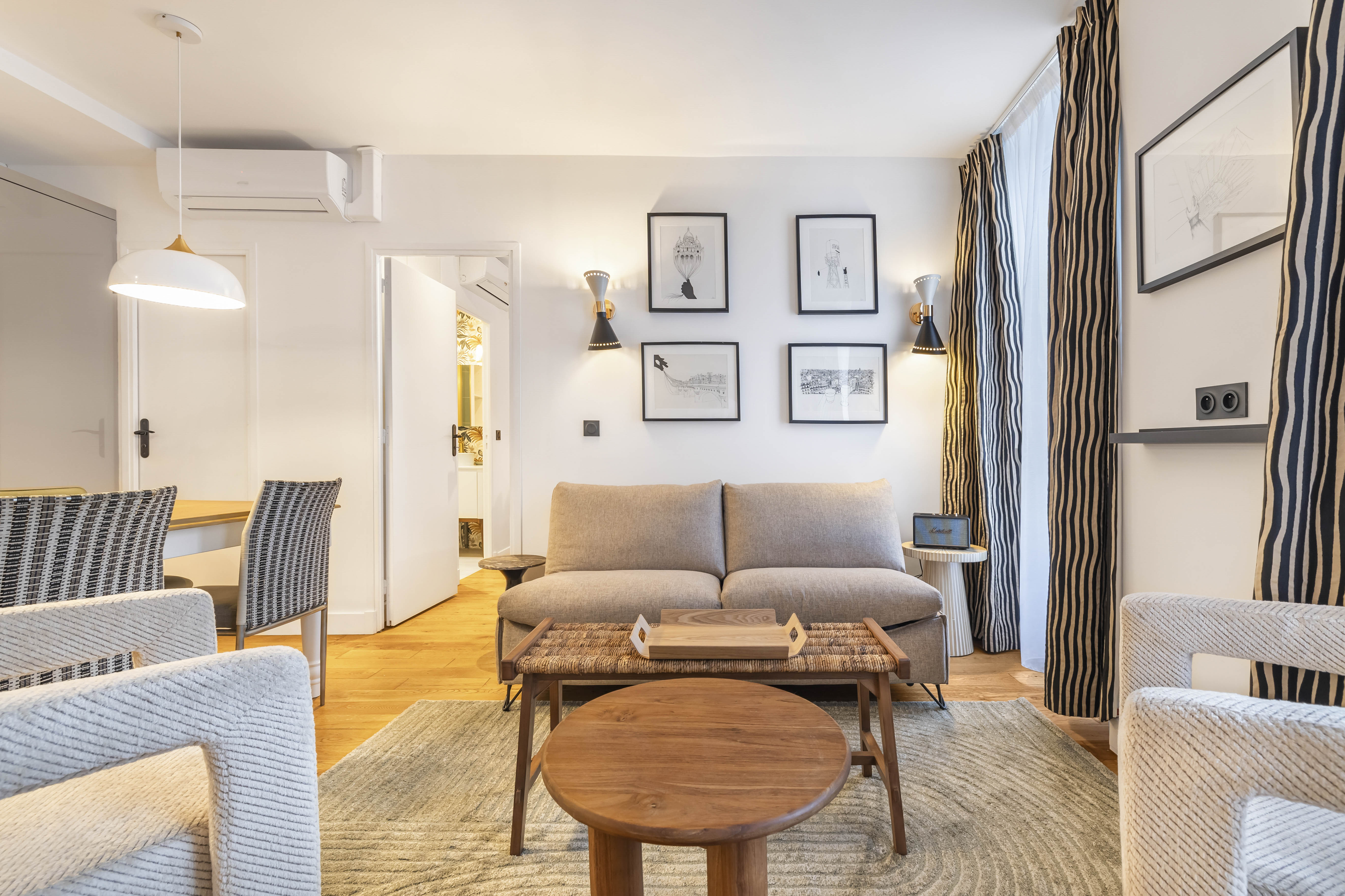 Magnifique deux pièces de 33 m2 au cœur du Marais pour 4 personnes, entièrement sur sur . 3ème étage sans ascenseur, avec climatisation :